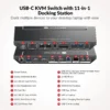 ● 11-in-1 Docking Station: Effortlessly switch between two computers with HDMI, USB, Ethernet, and more, creating a versatile and efficient workspace.
