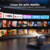 - Linux OS with Netflix: Enjoy instant access to Netflix, YouTube, Prime Video and more apps on this Smart projector powered by a Linux operating system.