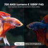 - 700 ANSI Lumens & 1080P FHD: Make movies shine! Native 1080p display with 700 ANSI Lumens of brightness enhances every detail of movies